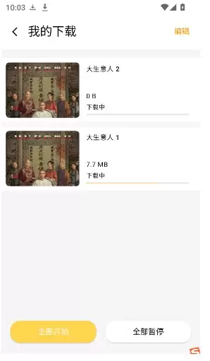 4、想要查看下载进度,只需点击"我的下载"就能看到所有正在下载和已完成的剧集,实时掌握缓存状态。
