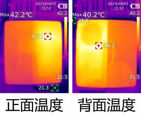 锁帧带来了优秀的温控与功耗表现,游戏过程中机身最高温度仅42.2℃,高温区域远离手持位置,手感上完全感受不到发热,整机功耗稳定在4.3W。需要说明的是,内屏高分辨率会增加运行负载,因此更建议用内屏玩《王者荣耀》等轻度游戏,而非大型3D手游。