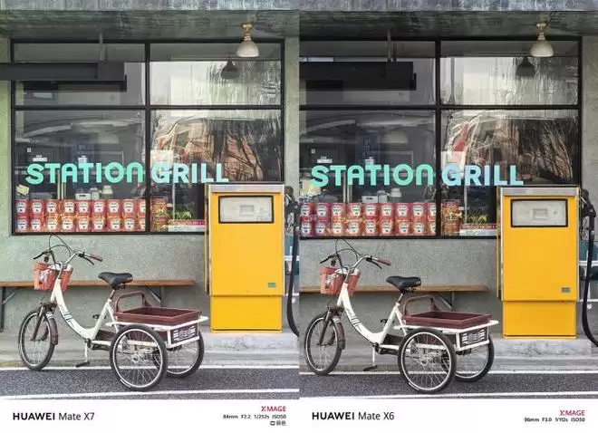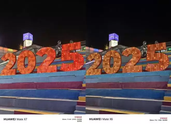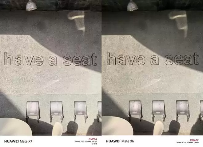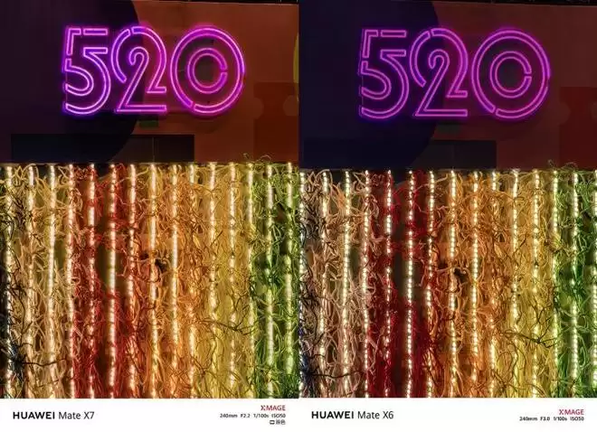 色彩方面,如果是近距离拍摄,色彩差异其实已经肉眼可见了,Mate X7的色彩会更为鲜艳,更讨眼球喜欢。
