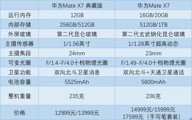 不过在选购时,很可能会在标准版和典藏版之间纠结,两个版本的差异相比前代更明显。除了外屏玻璃、内存存储、卫星通讯、电池以外,相机方面X7标准版是一代红枫,典藏版则是二代。而且X7标准版的主摄也不是新的17.5EV镜头。