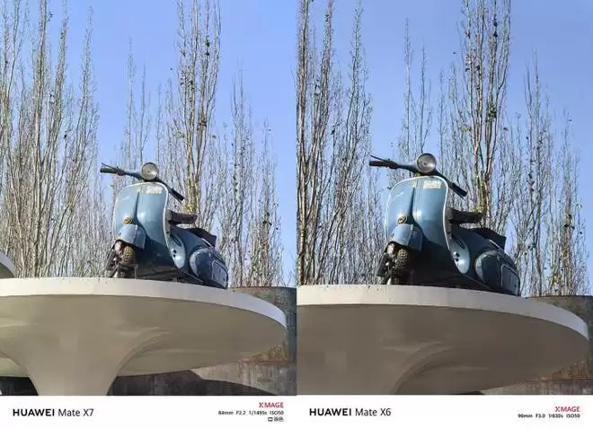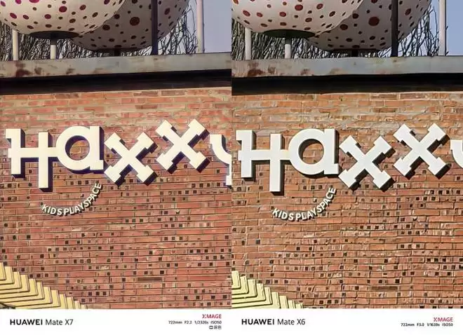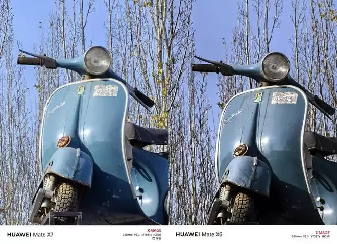 白天对比实拍,长焦的动态范围依旧是Mate X7略有优势,放大画面以后也可以感受到有一定提升。