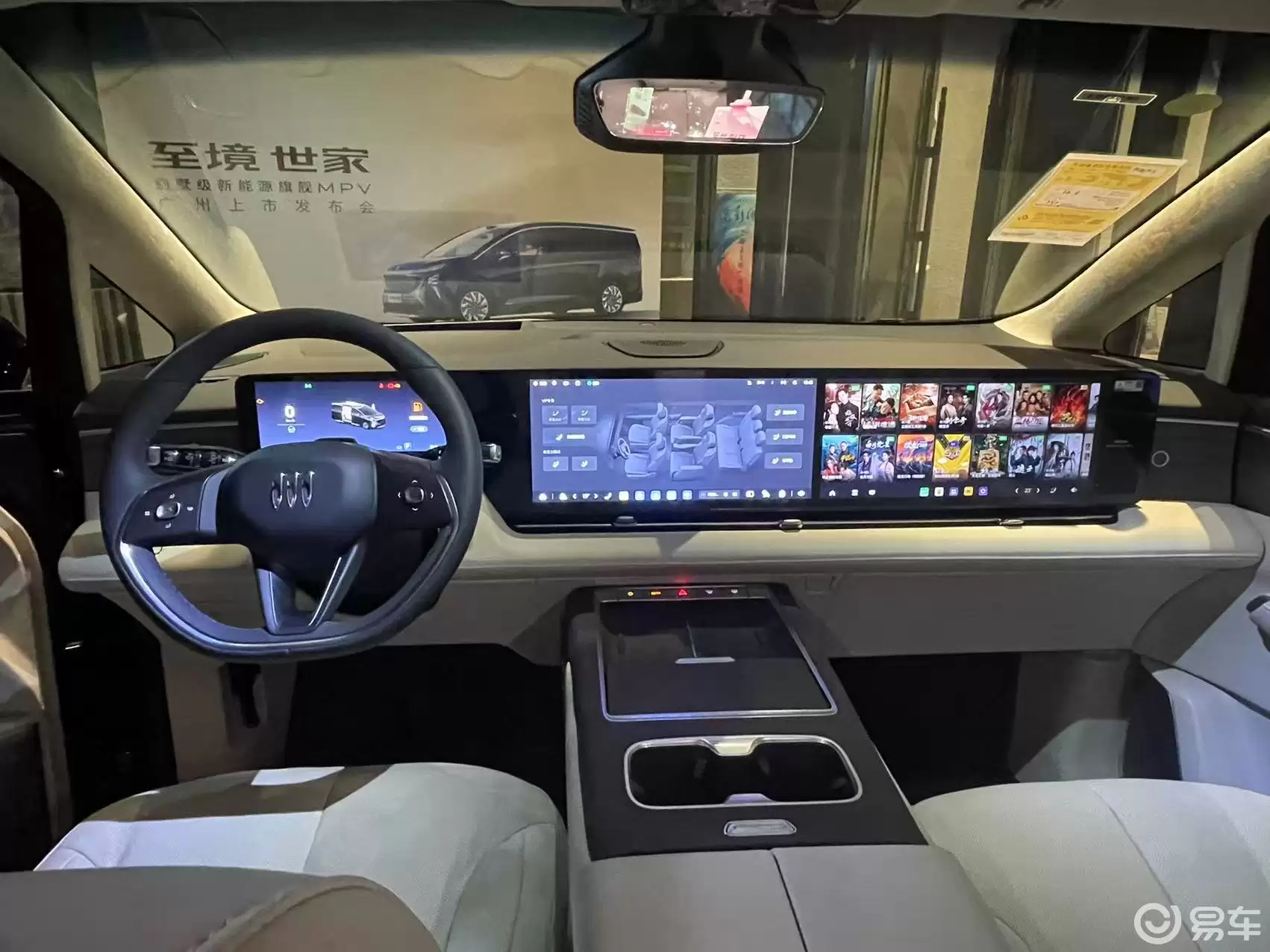 智能科技配置是别克至境世家的核心亮点。全系标配的“逍遙智行”辅助驾驶系统,依托Momenta R6飞轮大模型与激光雷达等硬件,可实现高速及城区领航辅助、全场景智能泊车等功能。外后视镜与尾灯两侧集成辅助驾驶指示灯,有效提升行车安全性。车内搭载由10.25英寸仪表屏、16.3英寸中控屏与16.3英寸副驾娱乐屏组成的三联屏系统,配合高通骁龙8775芯片,带来流畅自然的交互体验。50英寸全景AR-HUD、21英寸4K后排娱乐屏、流媒体内后视镜及双5.5英寸二排扶手屏的加入,共同构建起八屏联动的数字座舱,充分满足多场景娱乐需求。