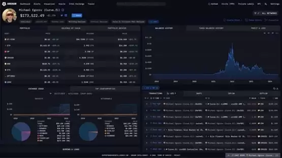 链上数据分析平台 Arkham 今天凌晨发布推文,指出稳定币交换协议 Curve 创始人 Michael Egorov 的借贷仓位再次面临清算风险。这次的抵押品是价值 1.4 亿美元的 CRV 代币。