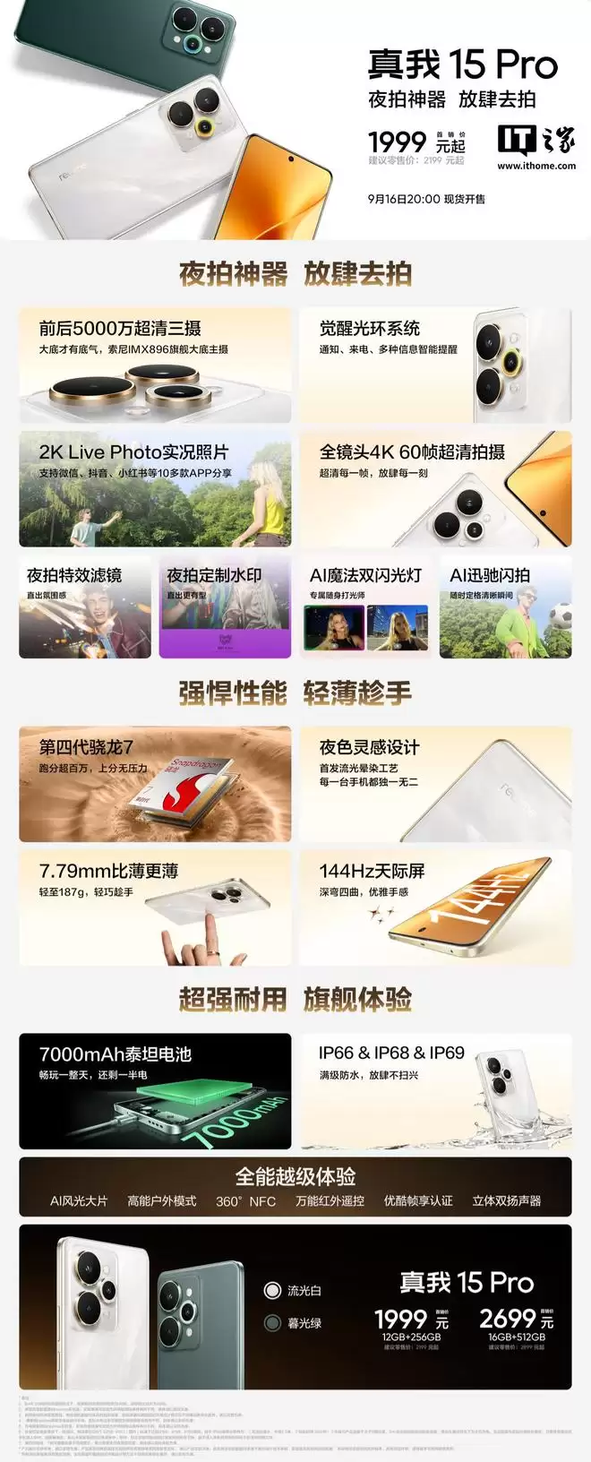 IT之家补充信息:普通版真我15Pro搭载骁龙7 Gen4处理器,配备大面积VC液冷散热系统与7000mAh大电池,并采用144Hz OLED高刷屏。此次推出的联名限定版机身厚度略有增加,为7.84mm(标准版为7.7mm)。