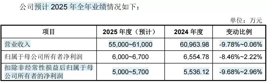 不过,进入2025年,增长势头有所放缓。前三季度,公司营业收入和扣非净利润同比分别下滑约2%和14%。根据公司预测,2025年全年营业收入预计在5.50亿至6.10亿元之间,同比变动幅度为-9.8%至0.1%;扣非后归母净利润预计在5.00亿至5.70亿元,同比波动范围为-10%至3%。