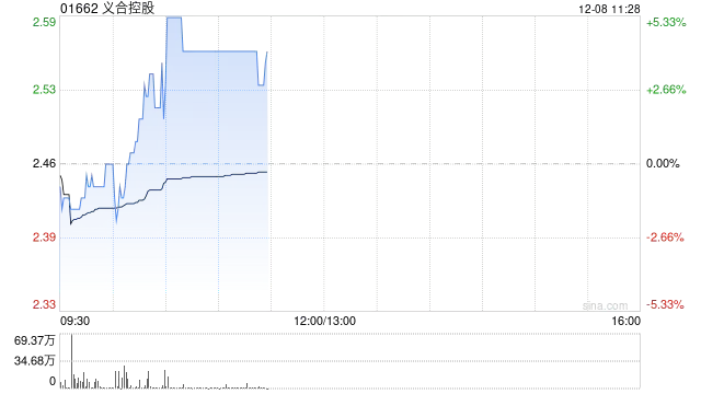 义合控股(01662)今日盘中表现强劲,涨幅一度超过4%。截至发稿时,股价上扬3.66%,报2.55港元,成交额达1236.82万港元。