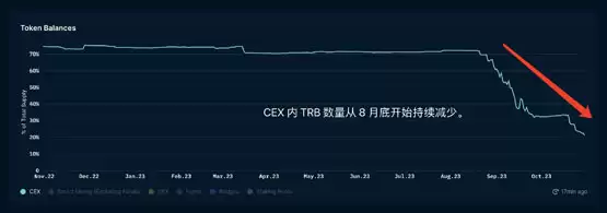 近一半的TRB流通在最近2个月被从交易平台提到链上