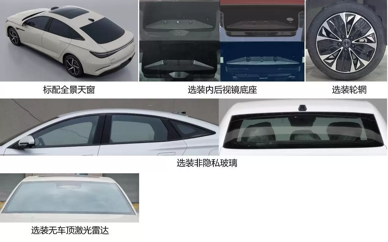 根据申报信息,海豹07 EV可选装普通玻璃和隐私玻璃,并标配全景天窗。此外,新车还提供不同样式的轮毂可选。除了搭载激光雷达的版本,新车也提供了未配备激光雷达的版本供消费者选择。