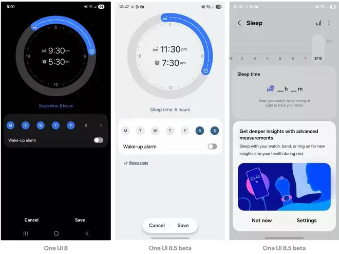 用户在编辑睡眠时间表时,会发现界面中新增了一个名为“睡眠统计(Sleep stats)”的链接。点击该链接将直接跳转至“三星健康”应用的睡眠仪表盘。虽然这并非新功能,但这一快捷入口填补了 One UI 8 时代的交互断点,让用户能更快速地查阅近期睡眠趋势。