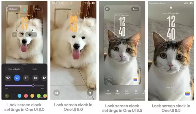 这一功能实际上是 One UI 8.0 智能时钟的“完全体”进化。此前的版本虽然具备调整尺寸和方向的能力,但触发条件仅局限于壁纸为人物或宠物时。