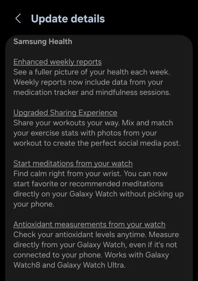 One UI 8.5 升级了 Samsung Health 的“每周摘要”功能。该功能此前仅汇总活动、睡眠和锻炼数据;更新到 One UI 8.5 后,周报将整合更多维度的健康指标。