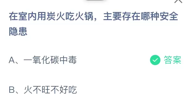 室内炭火火锅的安全隐患与支付宝蚂蚁庄园解答