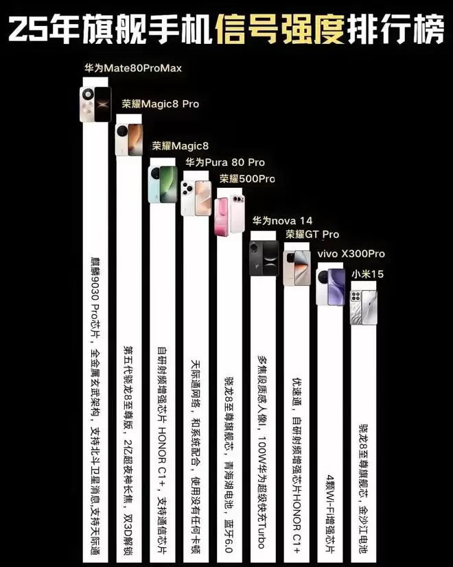 2025旗舰手机信号揭秘:华为领先,小米第九背后