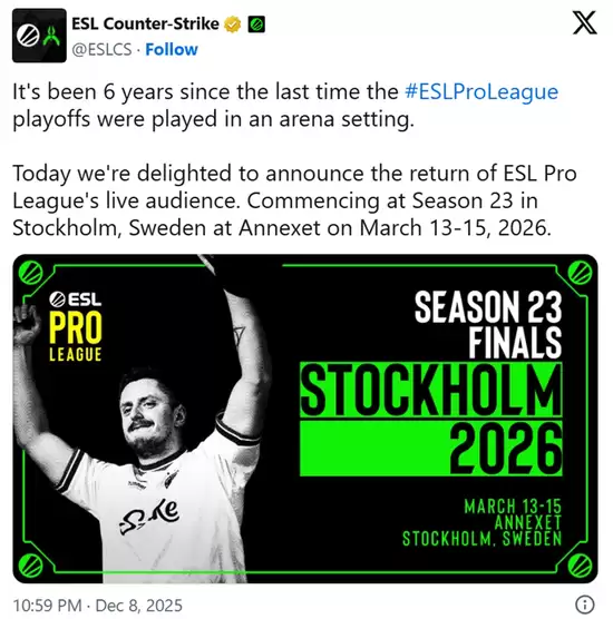 主办方近日正式宣布,EPL S23的淘汰赛阶段将重返线下场馆进行。这一消息已通过赛事运营团队的最新社交媒体账号发布。值得一提的是,上一次EPL线下办赛,还要追溯到六年前。