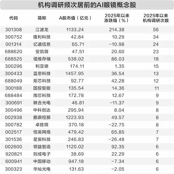 AI眼镜新品密集发布:这6只概念股年内涨幅领先