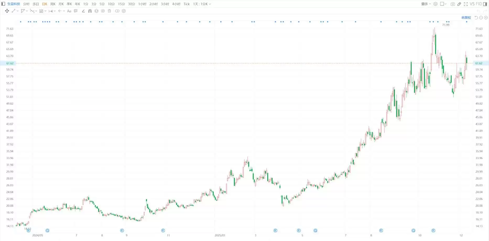 生益科技(600183.SH)今日盘中跌幅一度达6.5%,股价最低触及59.72元。尽管日内回调,该股年内累计涨幅仍高达159%。回顾近期行情,生益科技在10月30日盘中曾冲高至71.99元,创下了历史新高。