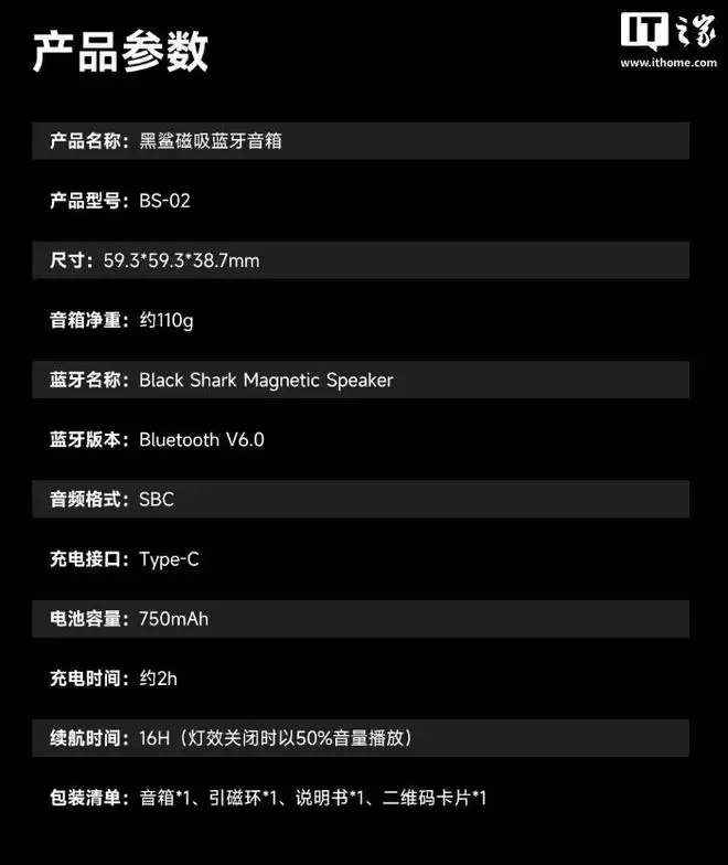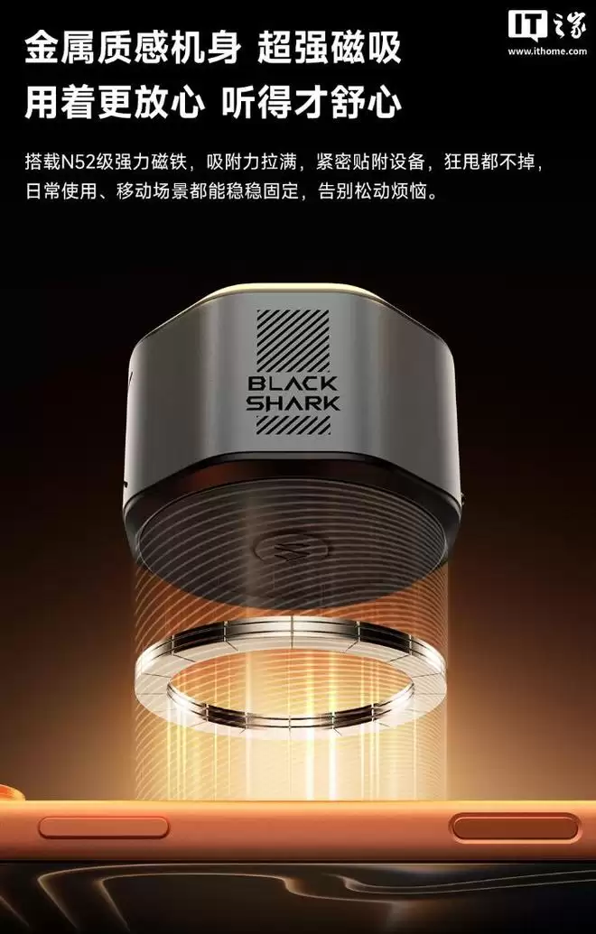 IT之家 12 月 9 日消息,黑鲨磁吸蓝牙音箱现已开启新品预约,拥有 1.45 英寸高性能喇叭,功率 4W,可直接磁吸在手机上,售价 129 元。
