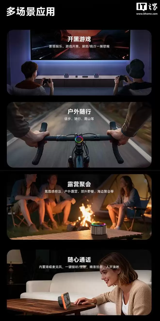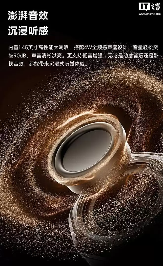 据介绍,这款音箱内置 1.45 英寸高性能大喇叭,搭配 4W 全频扬声器设计,最高音量可达 90dB,支持低音增强,可带来更澎湃的低频效果,配备 DSP Pro 2.0 算法,针对失真控制与低音表现做专项调校,号称可通透输出游戏音效、音乐贝斯声。
