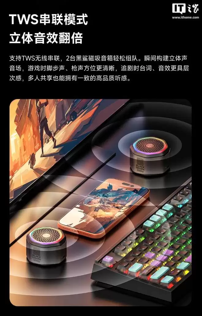 黑鲨磁吸蓝牙音箱预约开启:129元体验多重功能亮点