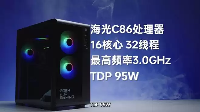 这款整机搭载的海光处理器采用 16 核 32 线程设计,配备高达 32MB 的 L3 高速缓存,最高睿频可达 3.0GHz,热设计功耗(TDP)为 95W。
