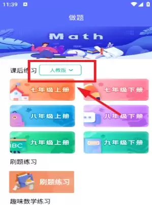 初中数学助手app怎么更改教程,用户在本站下载安装好软件,点击手机桌面图标,打开app,进入首页看到默认的是人教版,点击一下,点击你要的版本就行了。初中数学助手app教程更改方法:
