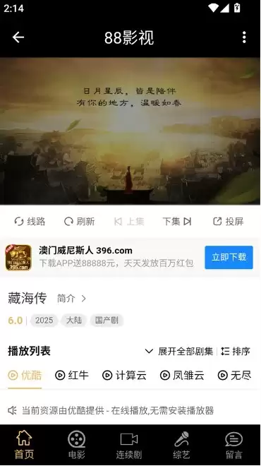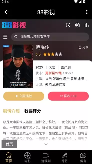 想知道88影视为啥这么好用吗?其实操作起来特别简单。首先,你得下载并安装这个应用。装好之后,打开它就能看到主界面了。接下来,你可以在海量的影视库里,挑选自己喜欢的电视剧或电影观看。点进具体作品的详情页,先了解下剧情梗概和相关信息。然后,你就可以直接点开播放,更棒的是,它还能让你一键跳过广告,享受无干扰的观影体验。
