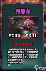 佛耶戈的技能名为“破败王剑”。他会瞬间跃向距离最远的敌人并发起攻击,造成物理伤害。若该敌人正处于孤立状态(周围没有其他友军),那么造成的伤害将大幅提升。成功击溃敌人后,佛耶戈会窃取其部分攻击力和法术强度,增益效果将持续一段时间。这使得他在战斗中能不断强化自身,愈战愈强。