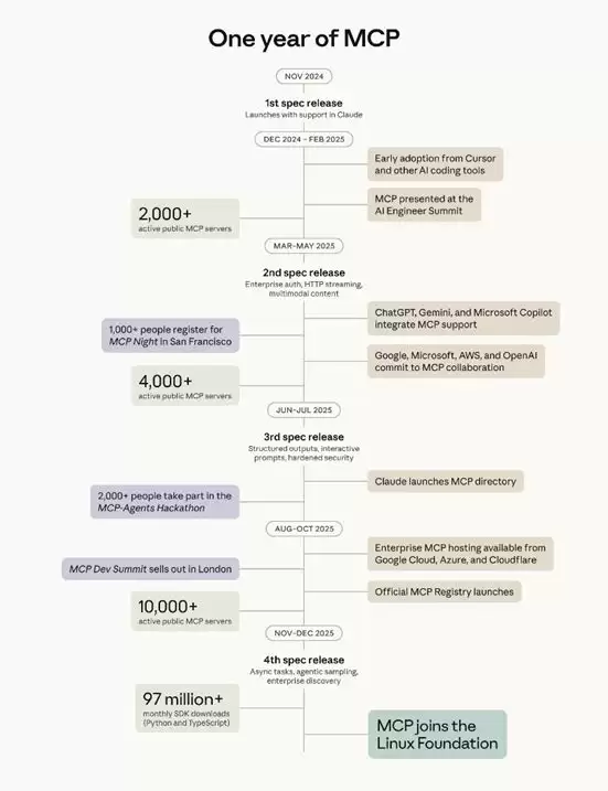 图 | MCP 过于一年的发展节点(来源:Anthropic)