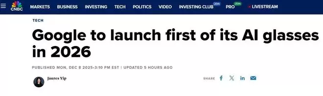 谷歌首款AI眼镜2026年发布,正面迎战Meta