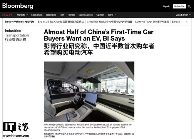 IT之家12月10日消息,彭博情报(Bloomberg Intelligence)最新发布的一份调研报告揭示了当前中国汽车消费市场的一个重要趋势:越来越多的首次购车者将目光投向了电动汽车,而非传统燃油或其他动力系统车型。