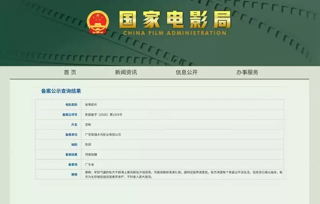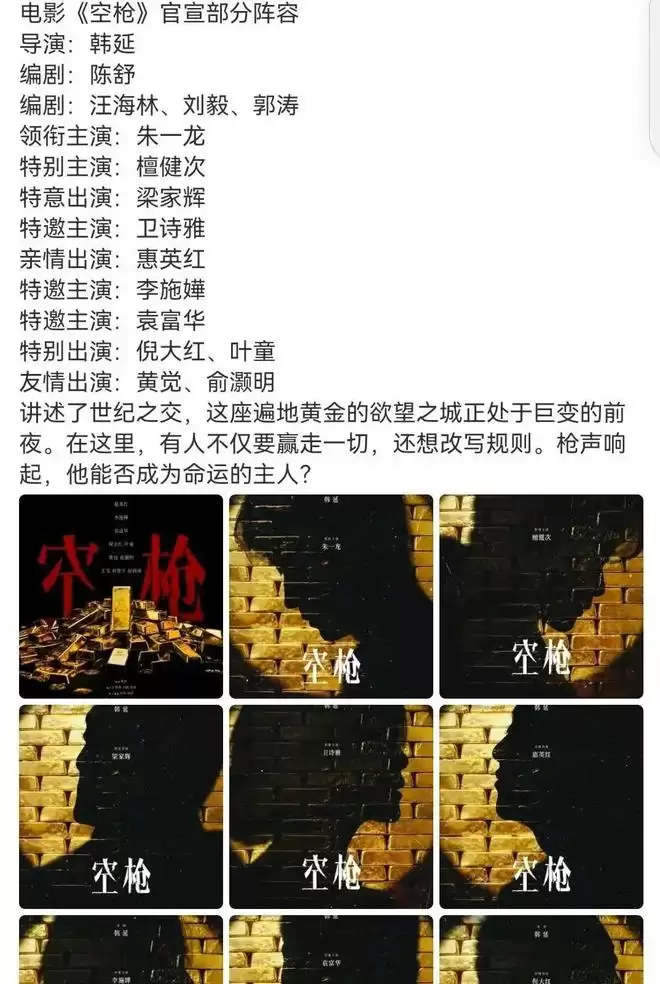 这是他首次接触犯罪类型电影,从这部《空枪》的电影备案来看,故事内容以世纪之交港澳为原型,融合黄金财富迷局与人性博弈。