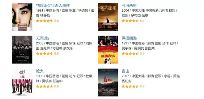 大家可以去搜一下这类电影的排行榜就能清晰的感知,在华语犯罪、悬疑这两个电影赛道,高分区几乎被香港和台湾制作的电影占领。