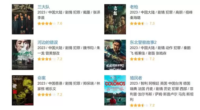 就拿近5年来说,只有2024年的内地犯罪电影大爆发了一次,输出了《三大队》《老枪》《河边的错误》《东北警察故事2》这样相对高分的犯罪电影,其他年份,找一部上7分的内地犯罪电影都难。