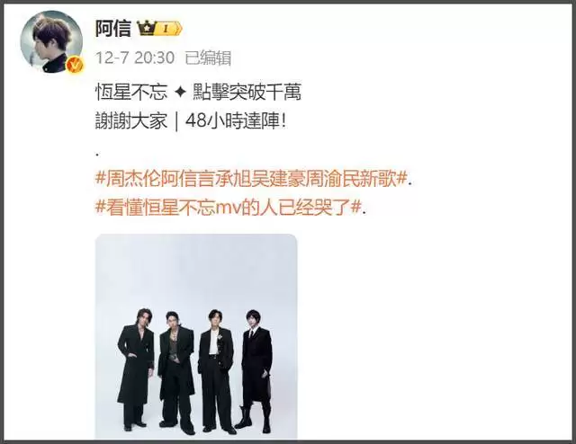 但反观阿信、F3和周杰伦等人,在内地开了无数场演唱会,疯狂捞金赚钱,一到该转发表态的时候,就仿佛忘记社媒密码,阿信过生日能全平台发文互动,演唱会能宣传,但一到“关键时刻”就掉线了。