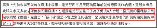 据悉,相信音乐是五月天的经纪公司,此次F4合体演唱会阿信也有参与策划,甚至就在朱孝天回应的前几天,还表示会尽力呈现最完整的阵容,朱孝天此前还在直播中说相信音乐的艾姐找了他两次,听起来也很有诚意。怎么朱孝天被踢出局,就开始说主办方昧良心了?