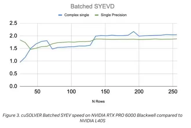 CUDA 13.1 继续优化用于特征分解的批处理 SYEVD 与 GEEV API,并带来了显著的性能增强。