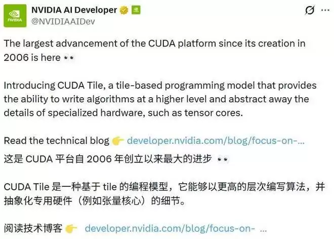 几个小时前,NVIDIA CUDA Toolkit 13.1 正式发布,英伟达最新表示:「这是 20 年来最大的一次更新。」