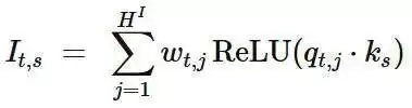 如果你对数学细节感兴趣,下面展示了(摘自论文的)该 lightning indexer 相似度分数的方程: