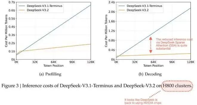 图 19:由 DeepSeek 稀疏注意力 (DSA) 实现的推理成本节省。来自 DeepSeek V3.2 报告,并加上了带注释。