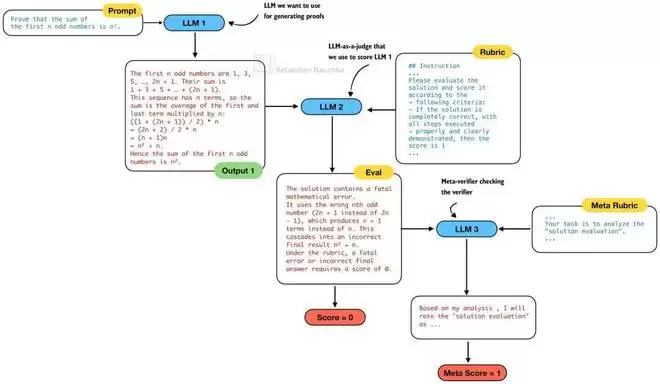图 13:元验证器 (LLM 3) 检查验证器 (LLM 2) 是否正确评估了生成器 (LLM 1)。