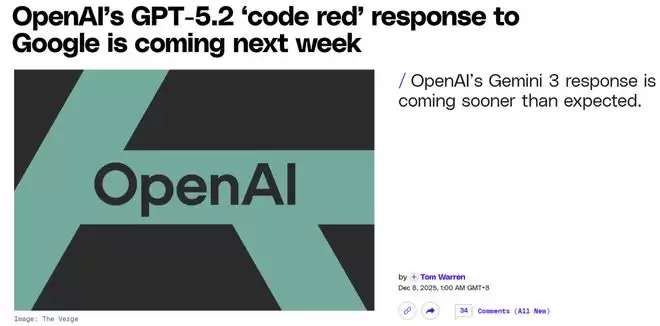谷歌发布的Gemini 3所展现出的强悍竞争力,让OpenAI措手不及。
