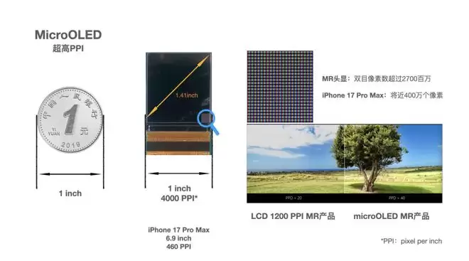 为了提升XR设备的清晰度,2024年PICO和供应商启动了MicroOLED定制,这使得光学显示系统得以进一步缩小,从而让MR头显轻便的同时获得更高的PPI和整体清晰度。