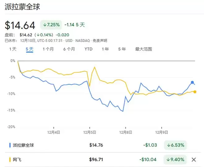 二级市场的反应清晰地反映了投资者对两个方案的偏好。派拉蒙股价周一飙升约9%,而奈飞下跌约3.4%。周二,派拉蒙继续上涨。