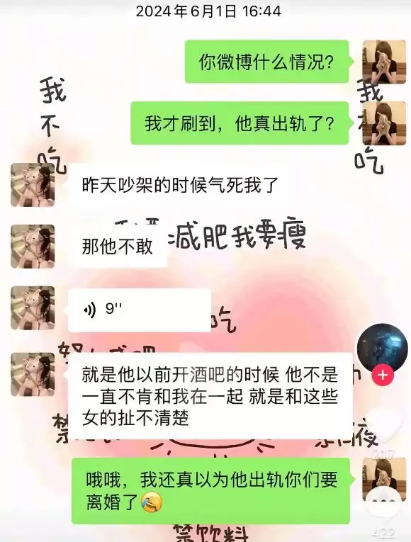 他否认出轨,还发了小作文和聊天记录,证明他和罗晶“就是一对相爱相杀的恋人”。