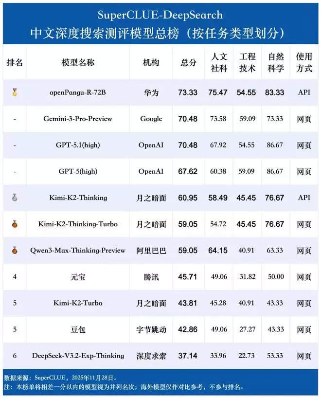openPangu-R-72B:登顶中文大模型深度搜索榜单SuperCLUE+