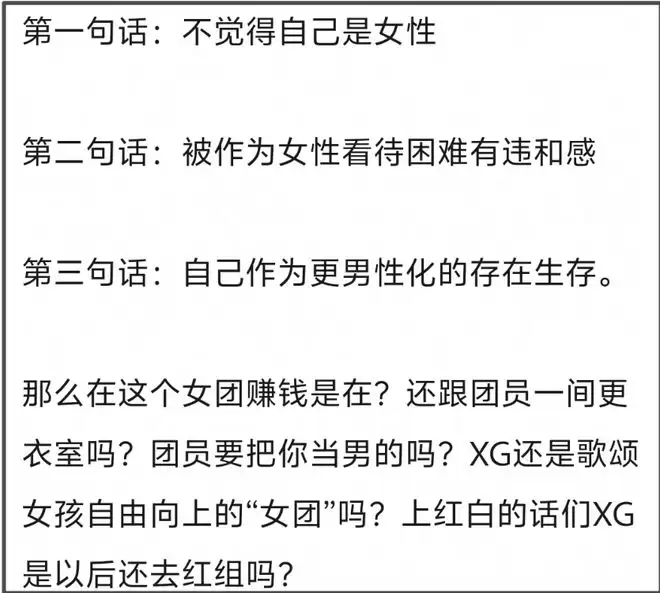 那么问题来了,既然COCONA想当男的,为什么要参加女团呢?接下来,COCONA又要以什么身份和队友相处,其他六位成员都是实打实的女生,整个团体的名字XG指的就是“Xtraordinary Girls”——Girls的意思就是女孩呀!