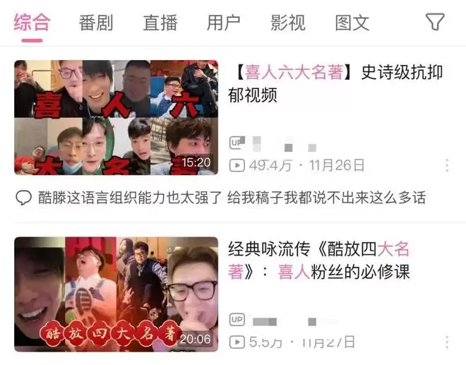 “王天放寡淡”等喜人直播名场面cut在社交网络传播,被称为“喜人六大名著”。