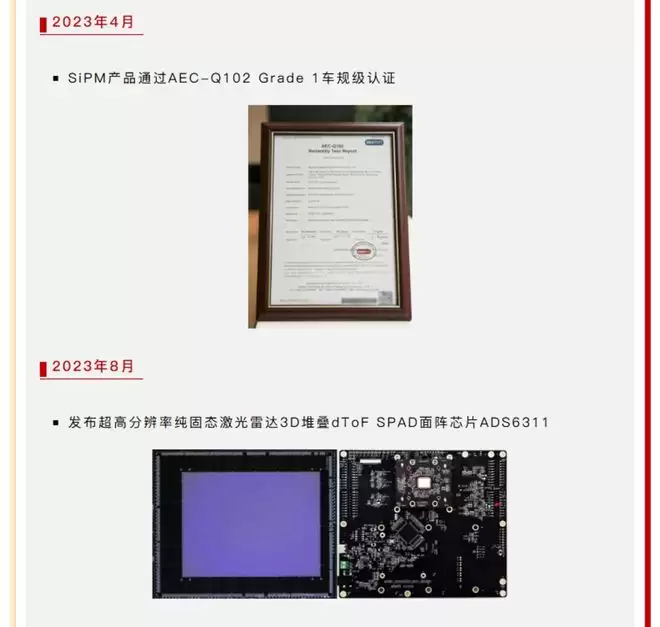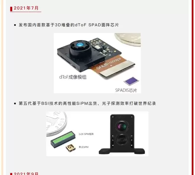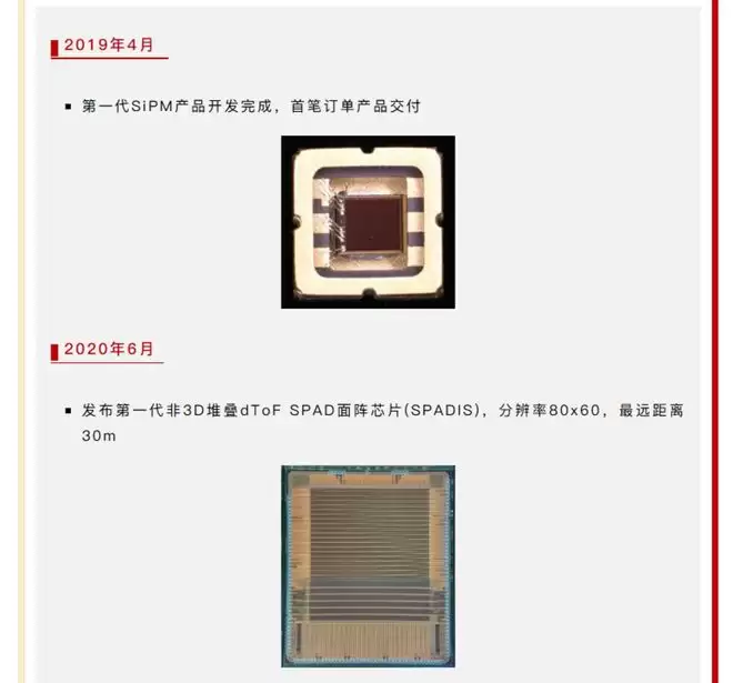 2019年:实现SiPM芯片交付,这被认为是初创期受到速腾聚创帮扶的体现。
