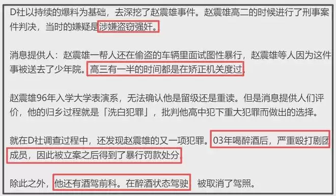 不仅如此,赵震雄还被扒出醉酒后殴打剧团成员、因为醉酒开车被吊销驾照,可以说是劣迹斑斑。