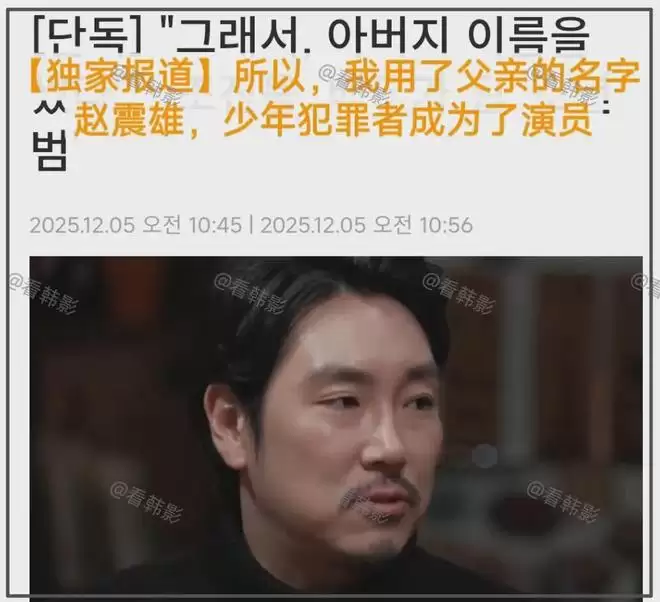 韩娱圈又塌一位“老戏骨”,韩星赵震雄被曝曾是少年犯,犯下盗窃强奸、打人酒驾等多项罪名,改名换姓勇闯韩娱多年未被发现,新剧还想打破限韩令在中韩同步上映,引得网友直呼别来。